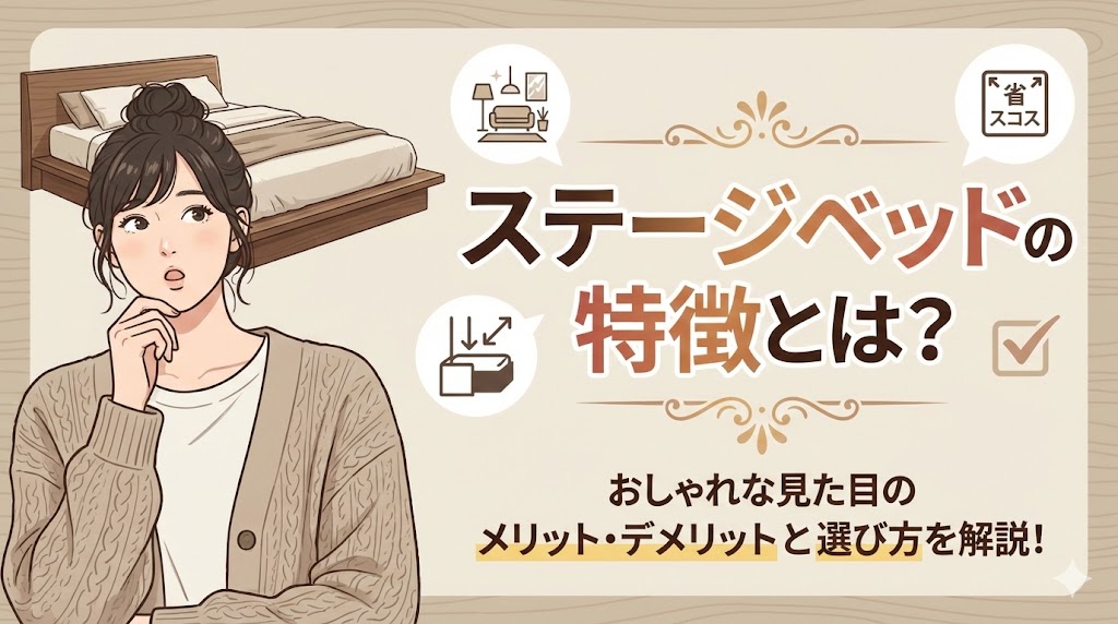 寝室の印象をがらりと変えたいとき、ステージベッドは有力な選択肢になります。ステージベッドの特徴は、マットレスの周りに生まれる贅沢な「余白」のデザインにあります。この記事では、ステージベッドの特徴を整理し、メリットやデメリット、失敗しない選び方を丁寧に解説します。