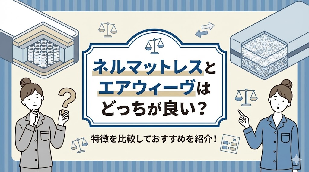 ネルマットレスとエアウィーヴの最大の違いは、素材による「寝心地の感触」と「お手入れ方法」にあります。コイルによる安定感と10年保証の安心感を求めるならネルマットレス、洗える清潔さと高反発な動きやすさを重視するならエアウィーヴがおすすめです。