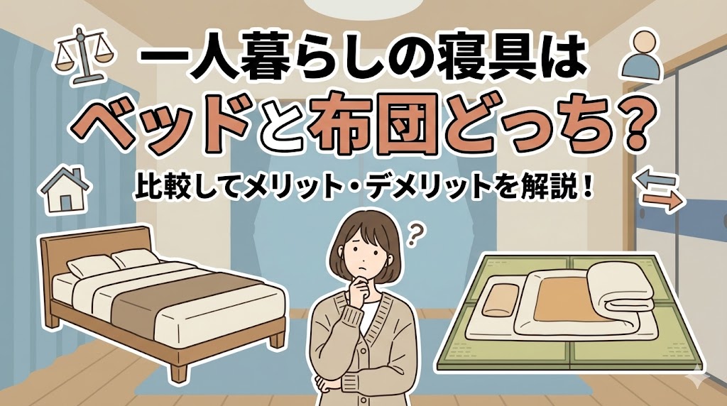 一人暮らしを始めるとき、寝具をベッドにするか布団にするかは大きな悩みどころです。限られたスペースのなかで、どちらが自分の生活スタイルに合うのか判断するのは難しいですよね。この記事では、一人暮らしの寝具はベッドと布団どっちが良いのか、それぞれのメリットとデメリットを徹底比較します。