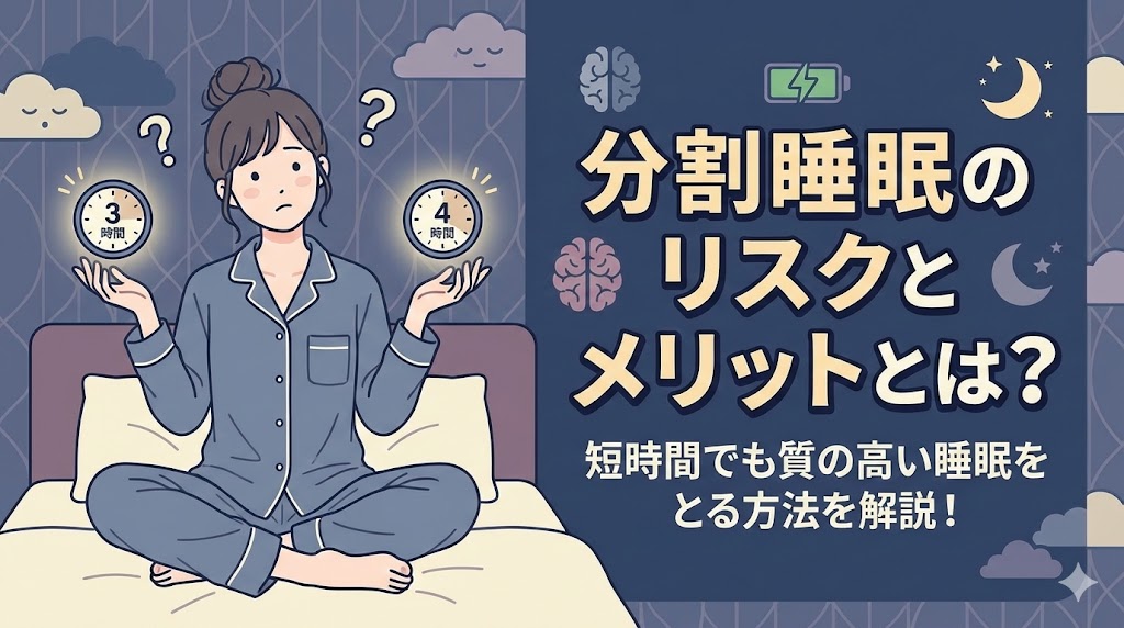仕事や家事で忙しい毎日を送っていると、まとまった睡眠時間を確保するのは難しいですよね。「分割睡眠のリスクとメリットとは?」と疑問に思う方も多いはずです。実は、寝る時間を2回以上に分ける方法は、体にとって負担になる側面と、一時的に脳を休める側面の両方があります。