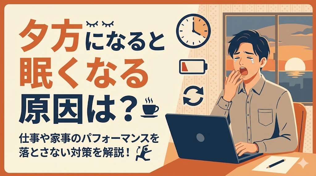 実は、この時間帯に眠気が強まるのには明確な理由があります。体内のリズムや昼食の摂り方が関係しているのです。この記事では、夕方になると眠くなる原因を整理し、今日からできる具体的な対策を詳しくご紹介します。